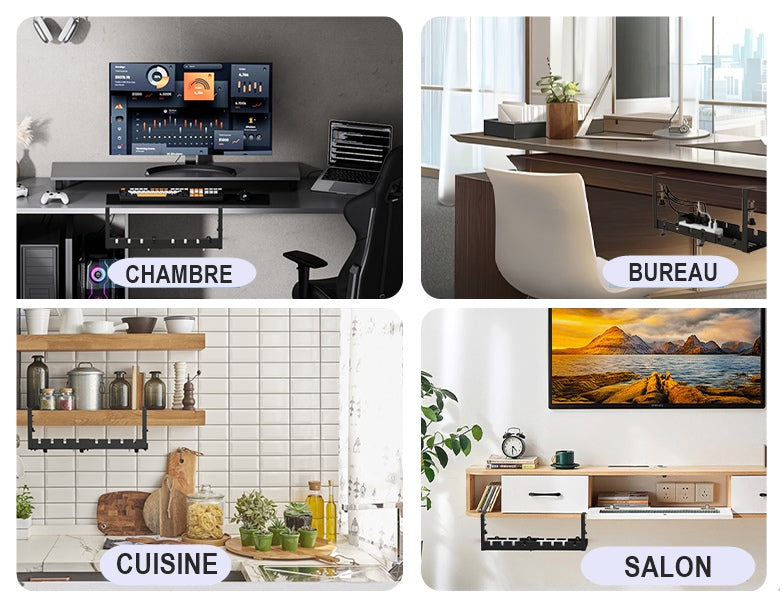 Idéal pour le bureau, la cuisine et bien d'autres endroits ! Gardez vos câbles et fils bien rangés où que vous soyez. Dites adieu au désordre sans effort.